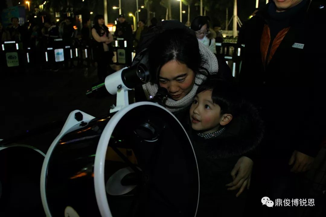 市民王女士带着从云南回来的外孙特意从五一路来到科技馆,就想给外孙一次不一样的天文知识体验活动。市民黎先生表示,此次专门带孩子来看月食的过程,是希望能增长孩子的见识,很多观众尤其是小朋友第一次通过专业的天文望远镜近距离“接触”血色满月,看到了月面上的环形山和黑色的月海,也了解的为什么月全食时候月亮是红色,一点也不害怕。